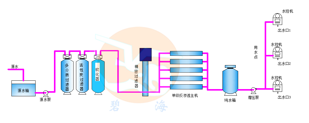 反滲透水處理設備工藝流程圖+自動刷卡出水機