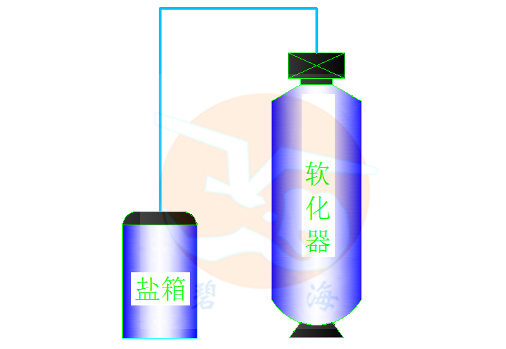 向再生劑箱中注入溶液再生一次所需鹽量的水。